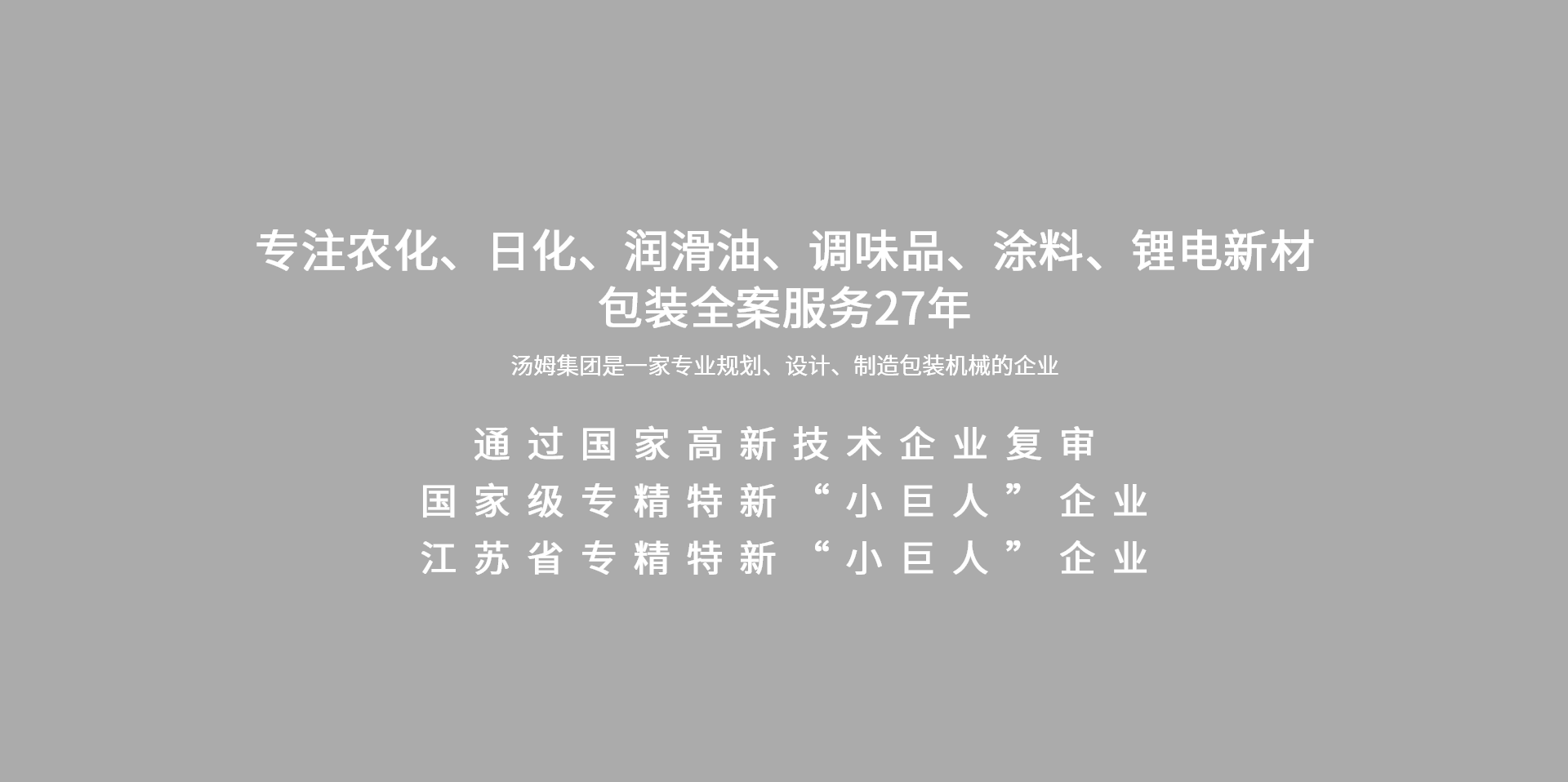 江蘇湯姆集團在液態(tài)、粉體、固體、顆粒等包裝領域的專長保證了工藝設計與整線工程的完美結合。建立了農化、石化、調味品、日化、涂料等不同包裝領域的工藝設計體系,根據不同的包裝形式及具體的工廠布局,均可提供專為您項目而量身定制的交鑰匙解決方案 。